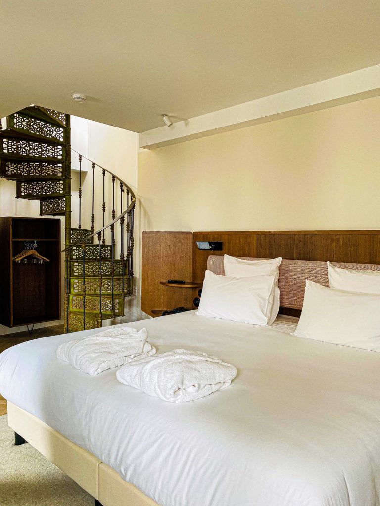 ainsi qu’un charmant ascenseur, où 30 cocons, uniques, confortables, modernes et répartis en 5 catégories, ont été imaginés par le couple Castro et l’architecte Vincent Bastie, chargé de la réhabilitation des lieux.