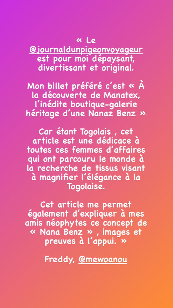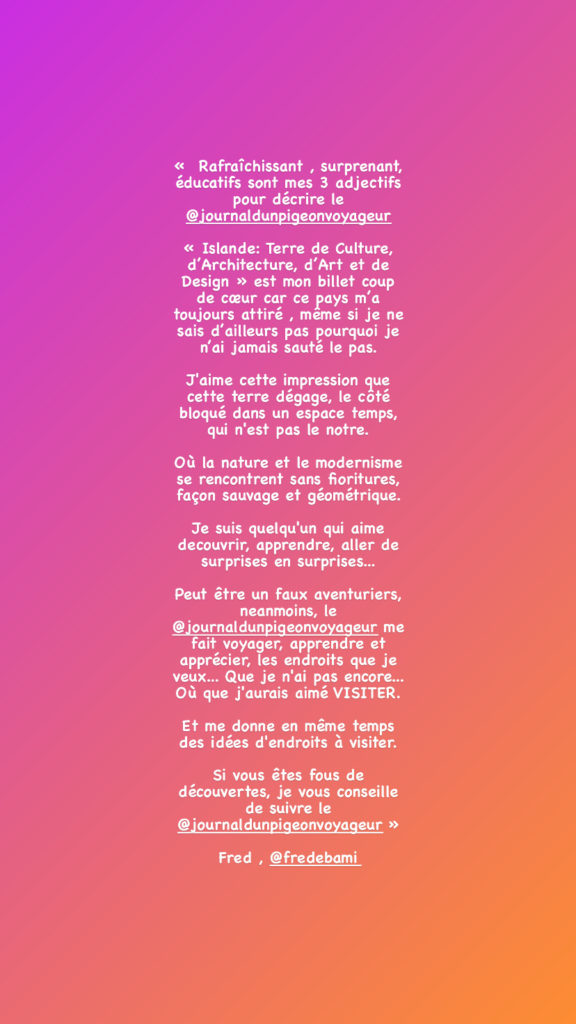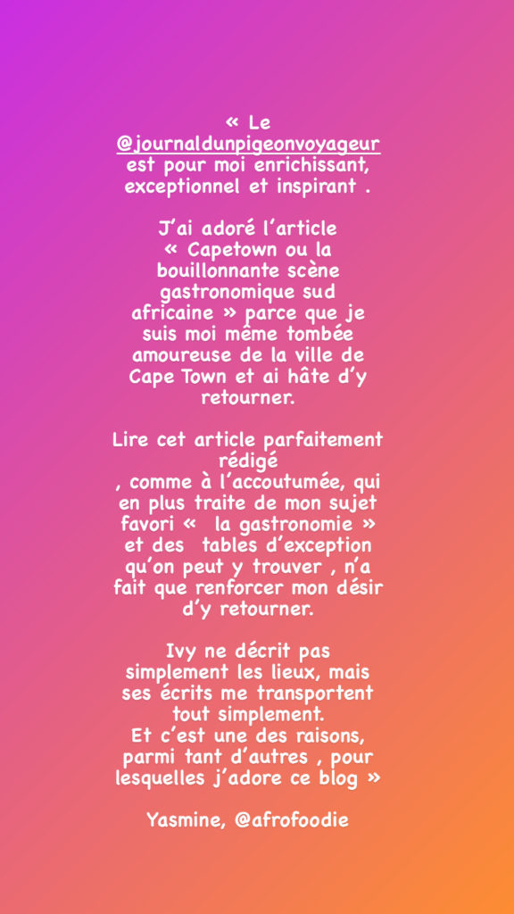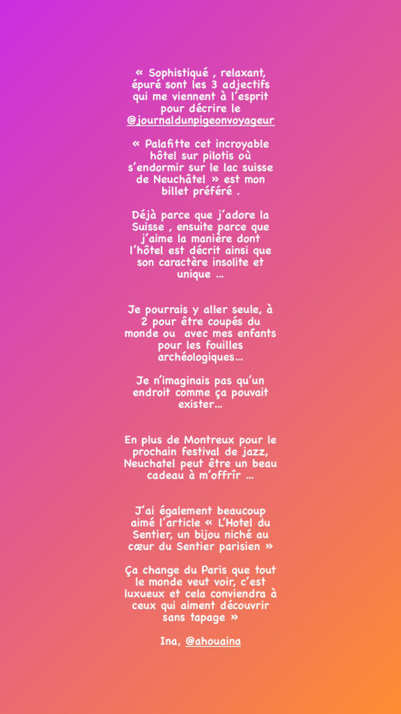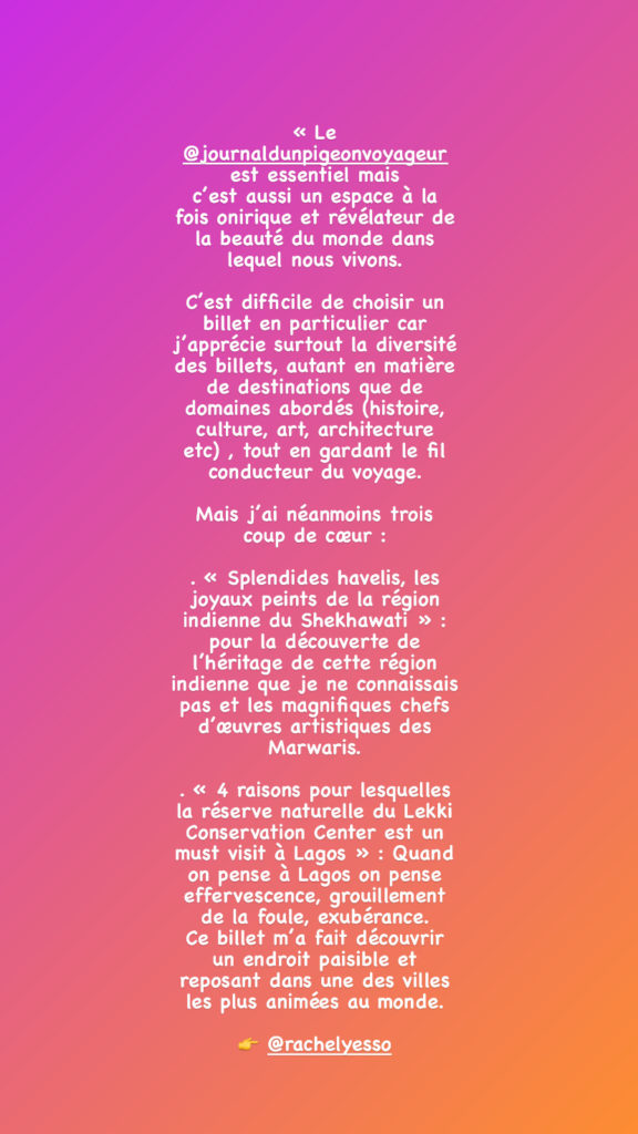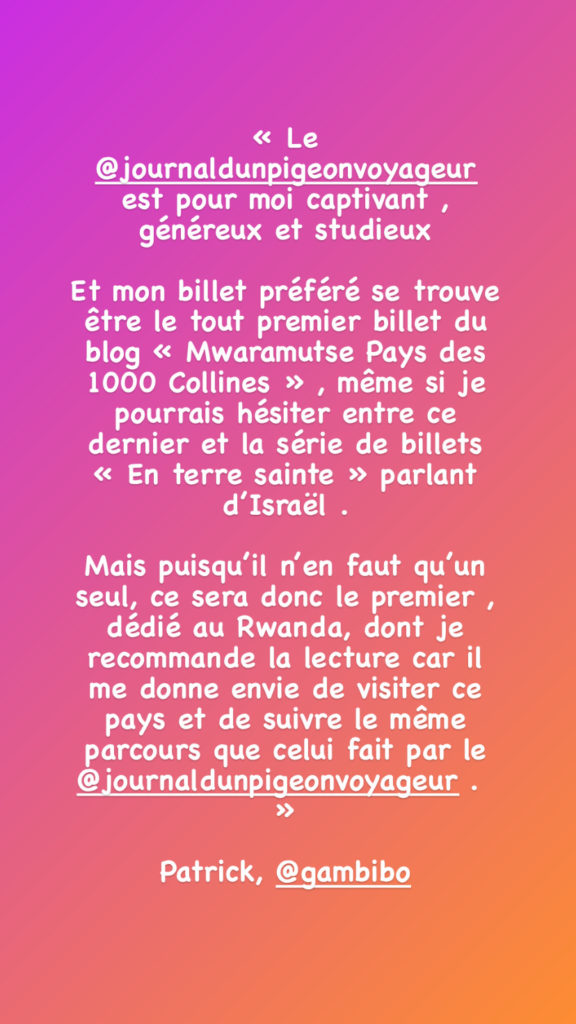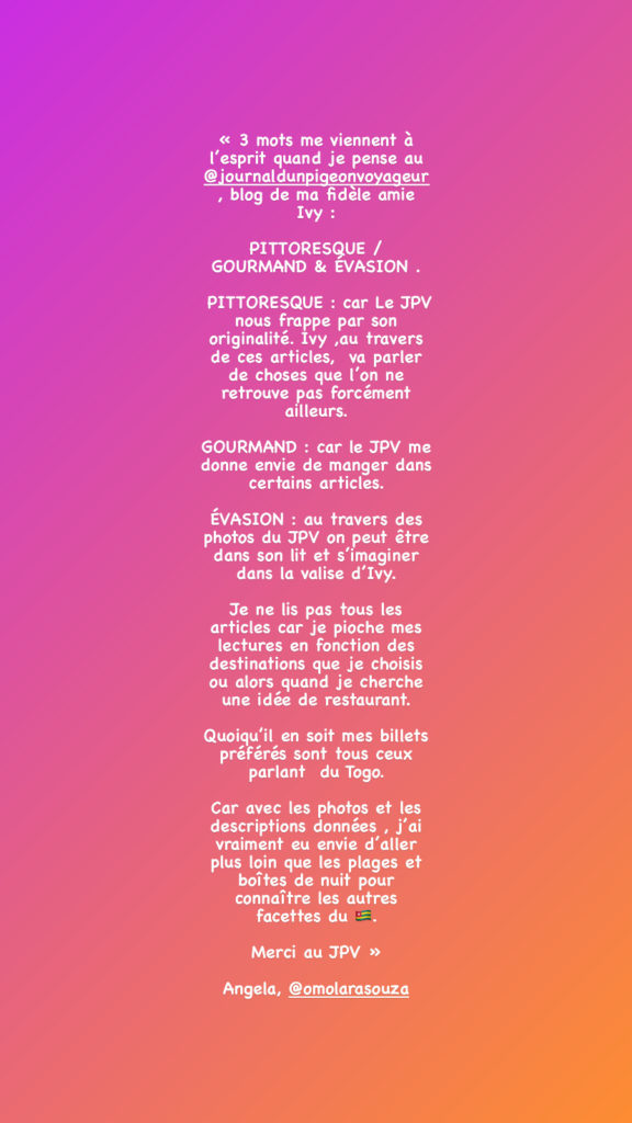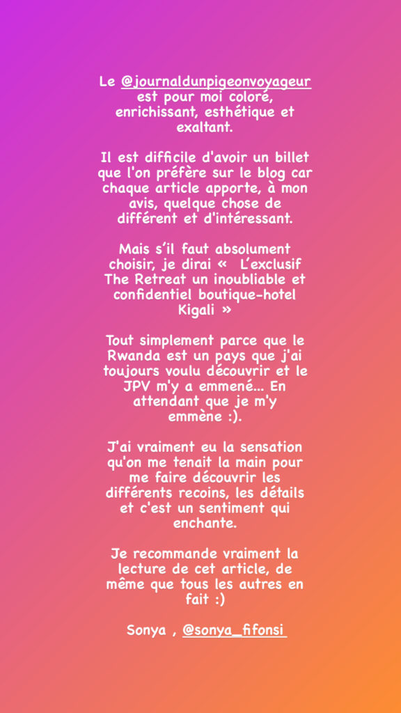 Et parce que certains d’entre vous ont, lundi, été dans l’impossibilité d’accéder à la storie Instagram du blog ou, s’y étant rendus, n’ont pas eu le temps, avant leur disparition au bout de 24 heures, de parcourir tous les témoignages postés, j’ai ainsi décidé, afin d’assurer leur pérennité, d’également les publier ici.
