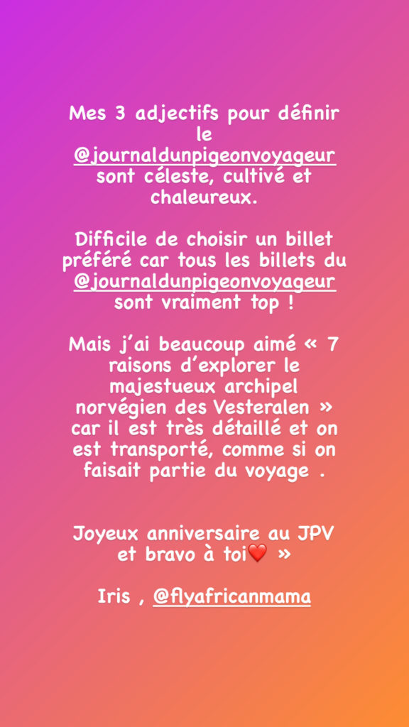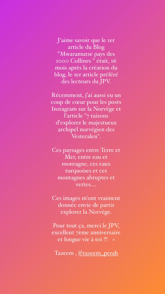 Longue et belle vie au JPV ! Continue de nous embarquer avec toi dans des voyages hors des sentiers battus. A vite 💋
