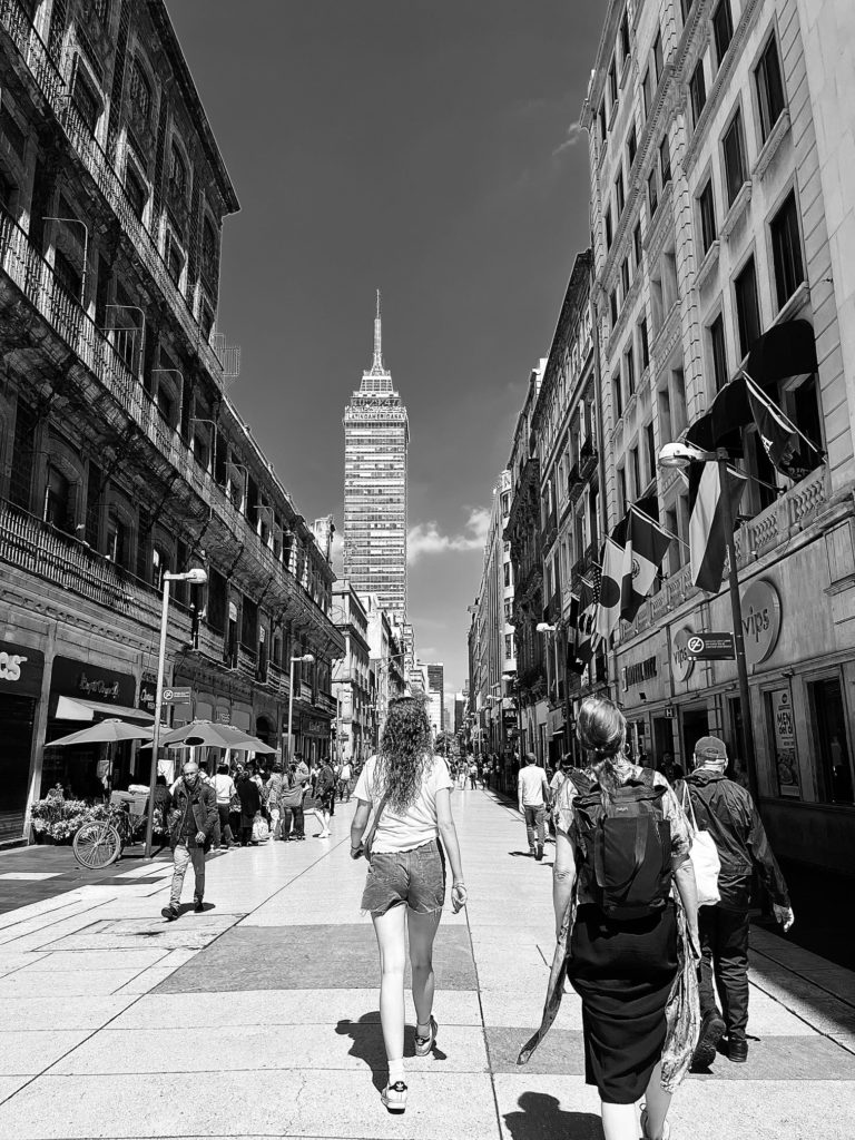Tandis qu’à l’horizon se détache la silhouette élancée de la Torre Latino Americana.