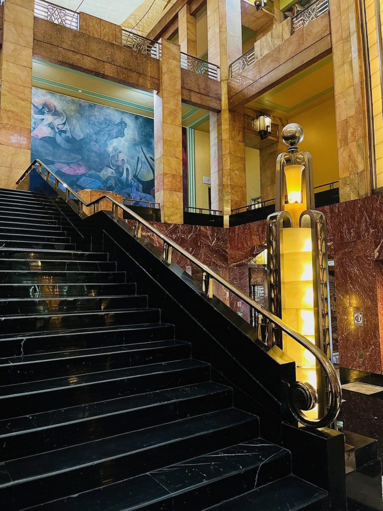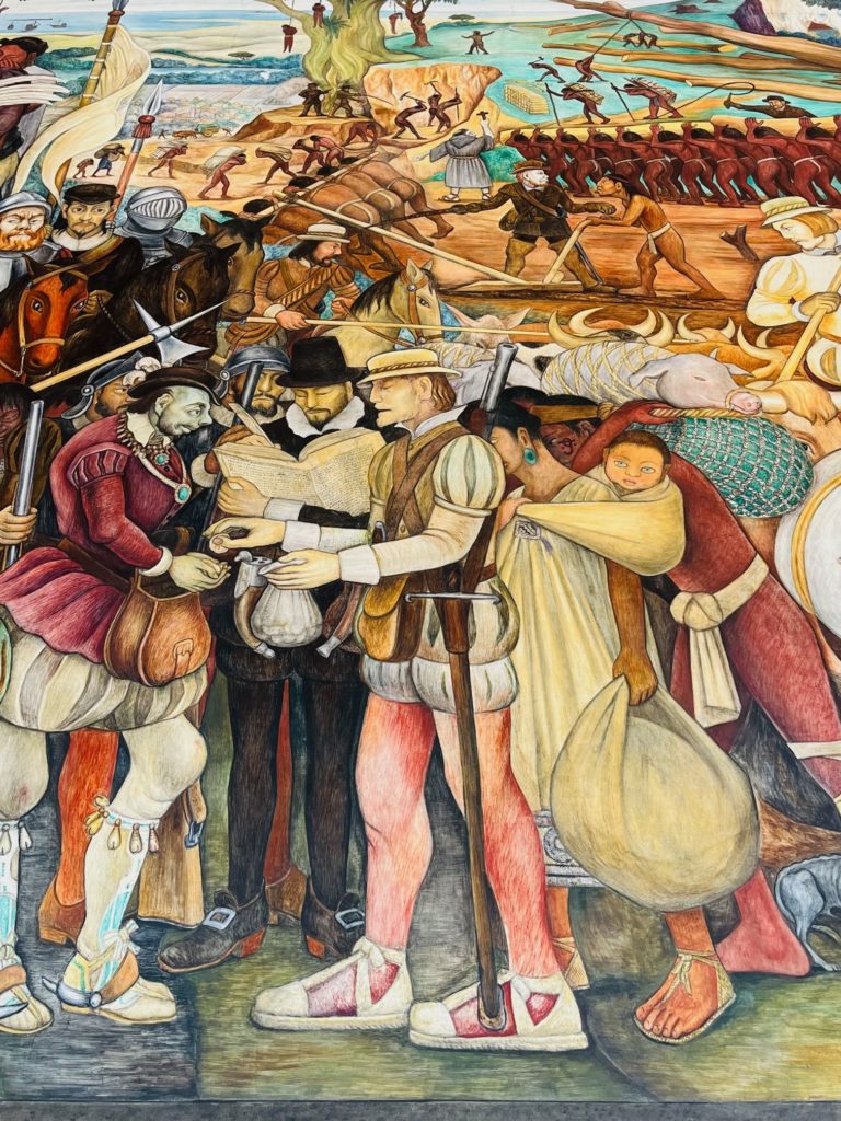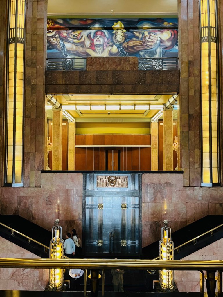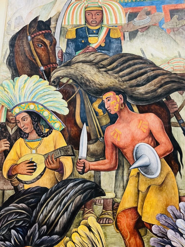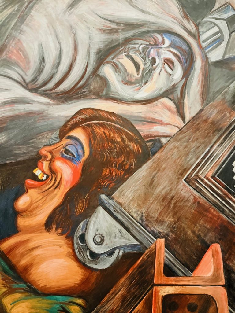 ou encore de l’incontournable Diego Rivera , dont j’avais en 2019 d’ailleurs pu contempler les magnifiques panneaux, composant l’Å“uvre intitulée Detroit Industry Murals, exposés au rez-de-chaussée du Détroit Art Institute, les 17 fresques du Palais des Beaux Arts immergent ainsi le visiteur dans l’Histoire du Pays tout en l’interpellant sur des questions socio-politiques.