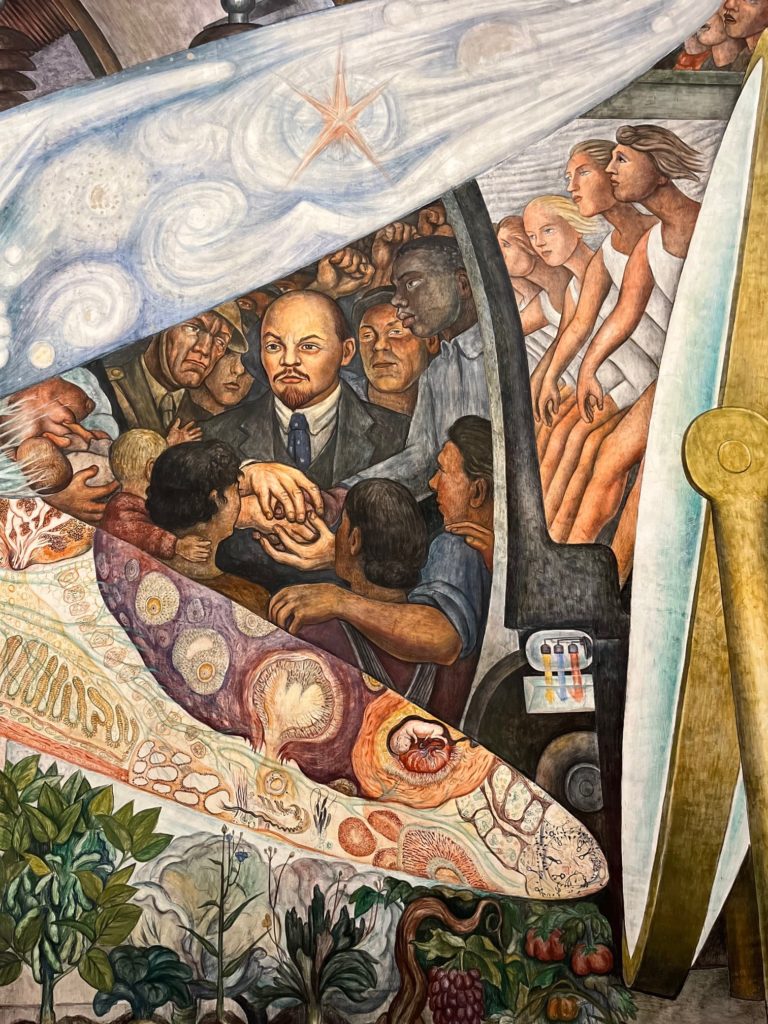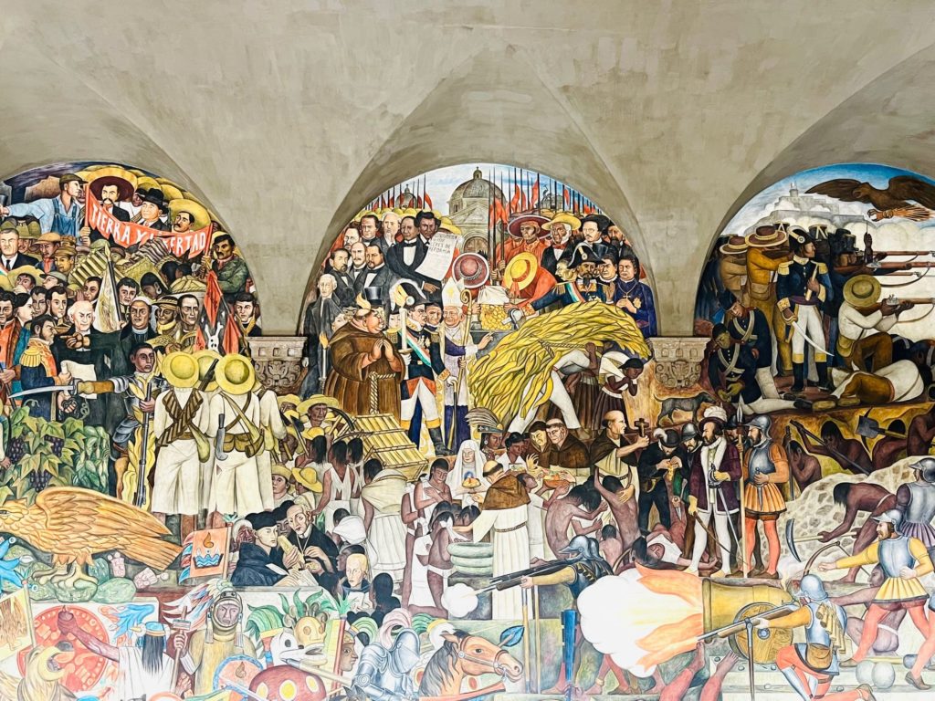 Où l’on se presse pour admirer les gigantesques fresques formant le tryptique de « l’Epopée du peuple Mexicain ».