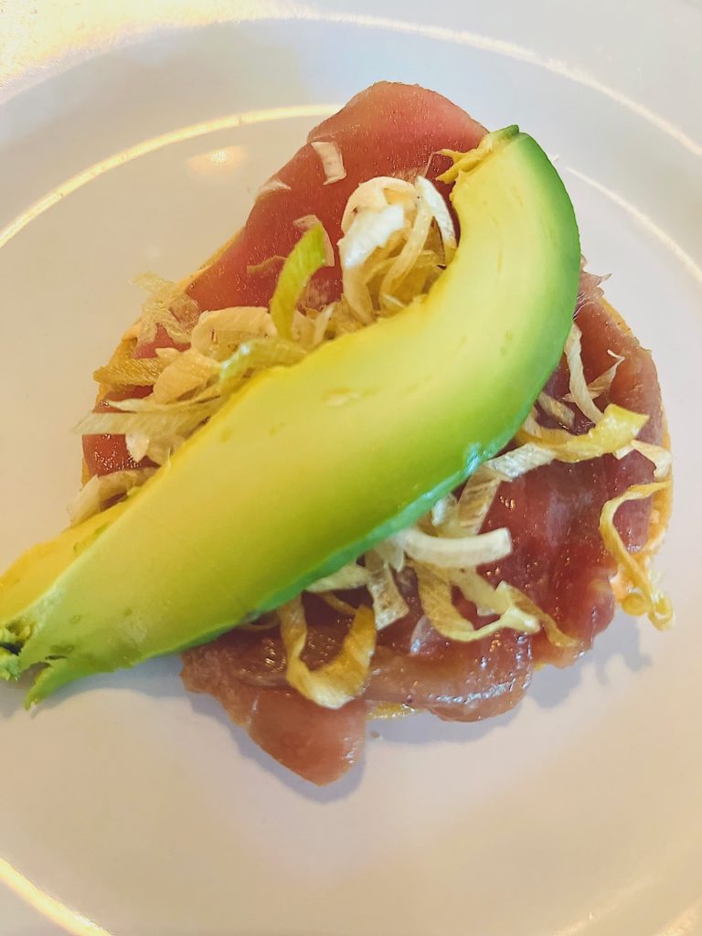 Impossible pour ma part d’oublier les orgasmiques gambas flambées au mezcal ainsi que les tostadas au thon cru, avocat, émincés de poireaux grillés et mayonnaise pimentée dégustées sur place .
