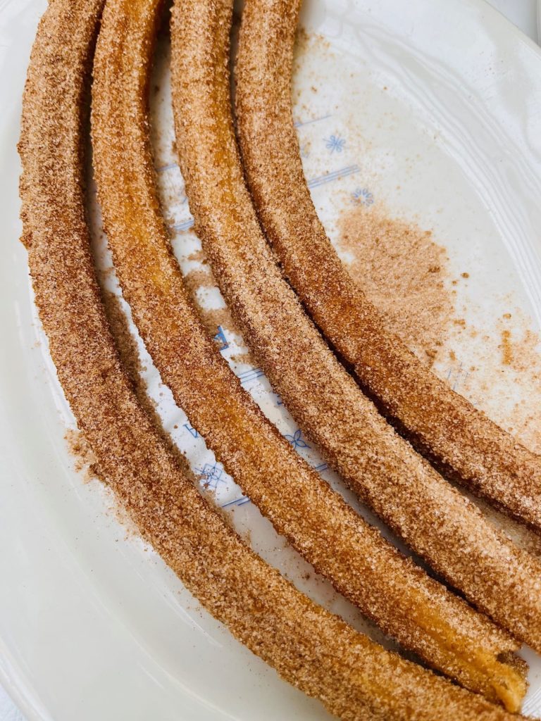 A Mexico, les churros sont cependant plus longs et recouverts d’un mélange constitué de sucre et de cannelle.