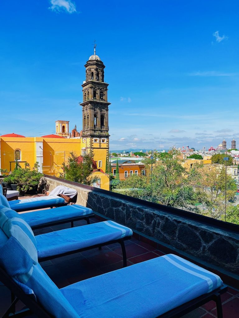 Face aux imprenables perspectives offertes, depuis ses rooftops ou les hauteurs de la ville, sur l’impressionnante église Nuestra Senora de Los Remedios de Cholula, érigée par les Conquistador au-dessus de la large pyramide aztèque éponyme,