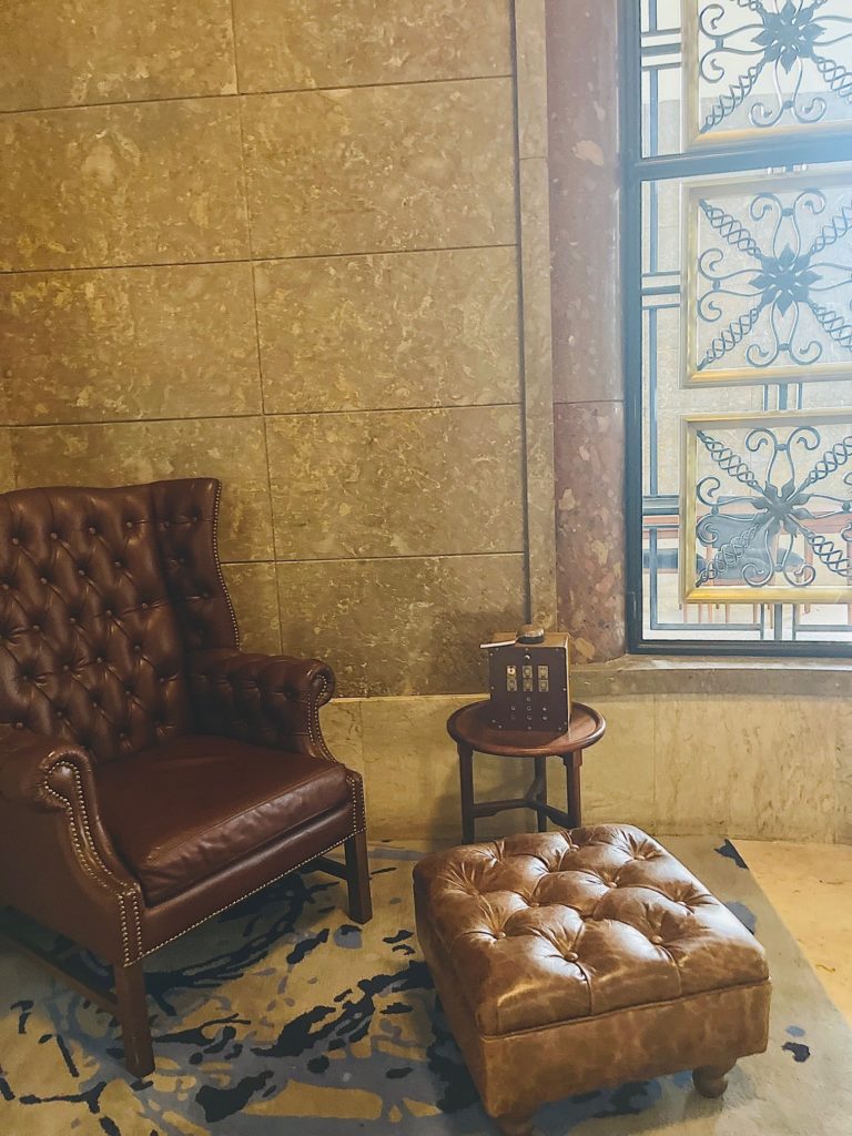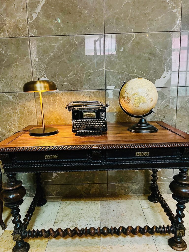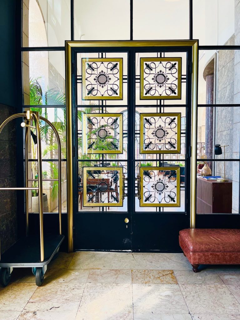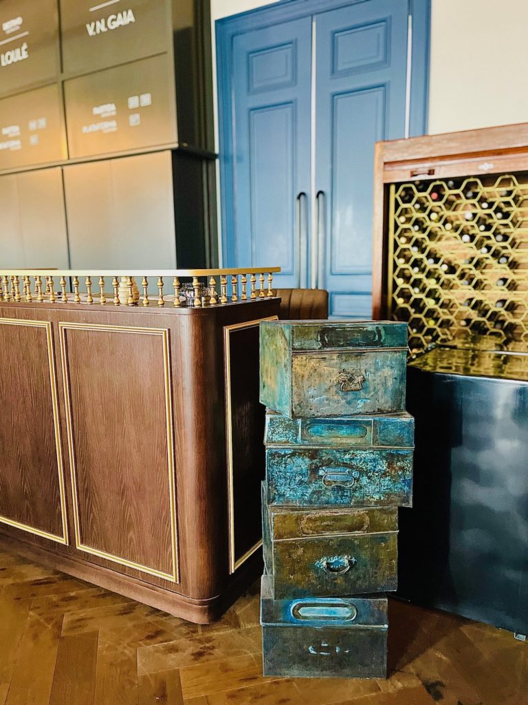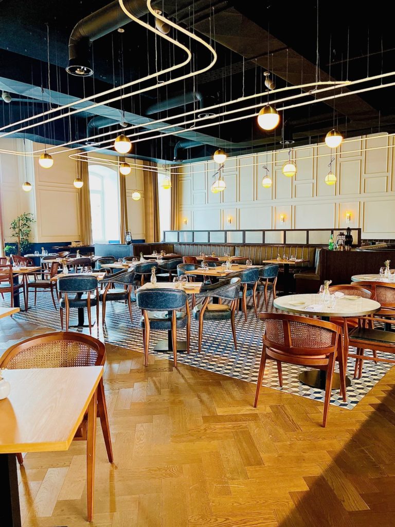 Le mobilier, évoquant  indifféremment émigrations, aurevoirs, retours, nouveaux départs et découvertes, du très design lobby, en faisant la part belle aux valises, malles, téléphones vintage et autres accessoires de voyage donne ainsi, au rez-de-chaussée, le là .