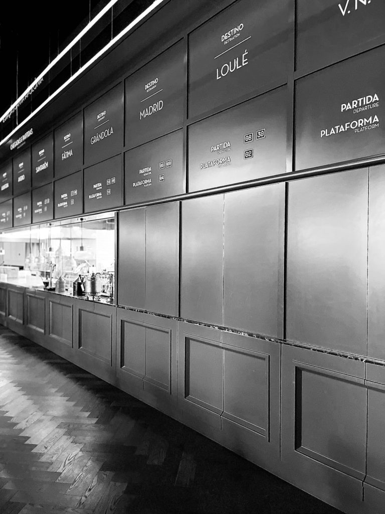 et références aux différentes villes pouvant être rejointes depuis la gare Santa Apolonia, que la carte imaginée pour le restaurant de l’établissement.