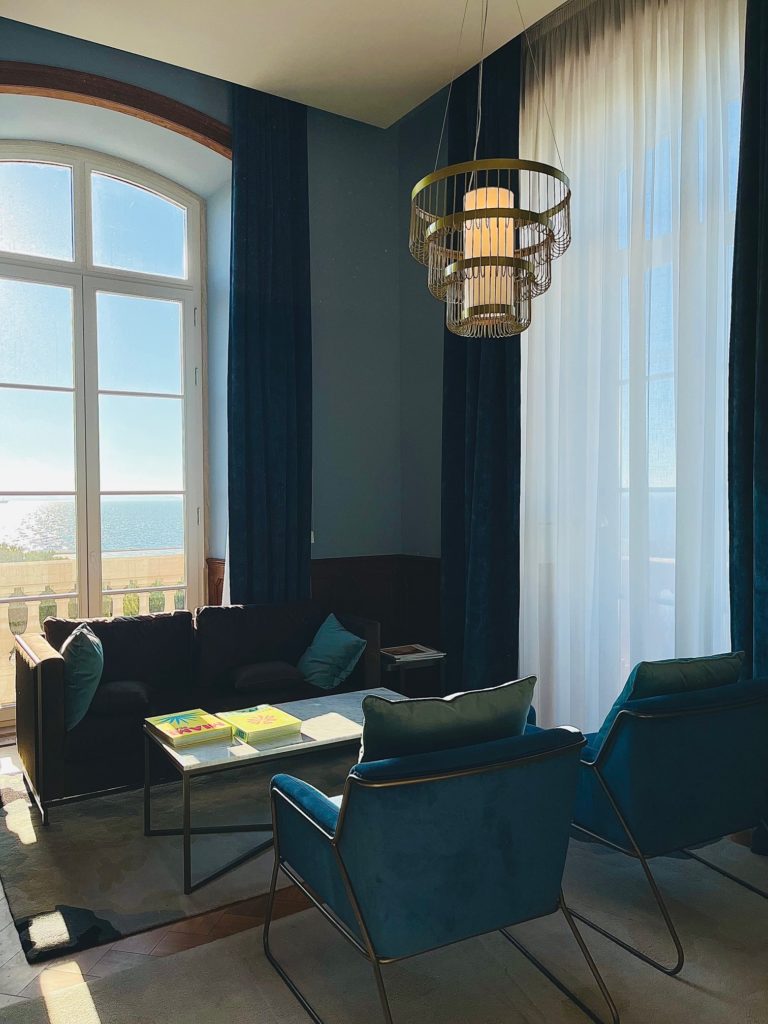 et , d’autre part,  la centaine de cocons , véritables havres de paix où bois, cuir et camaïeux de bleus règnent en maitre, ayant investi les étages supérieurs.