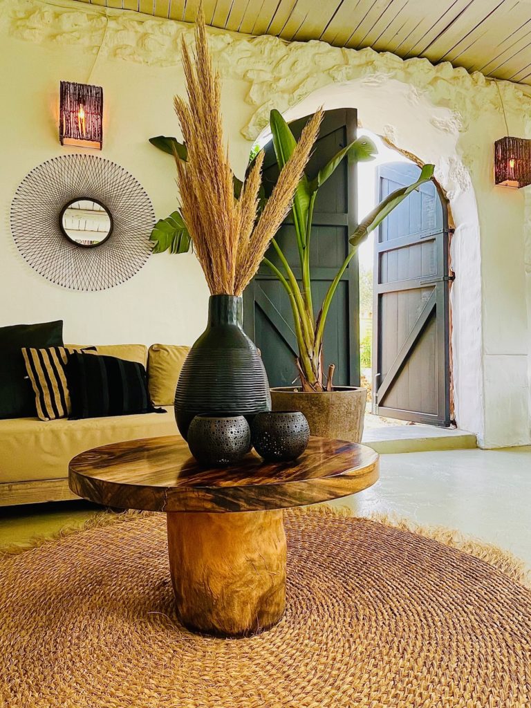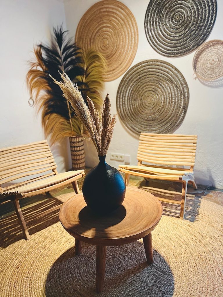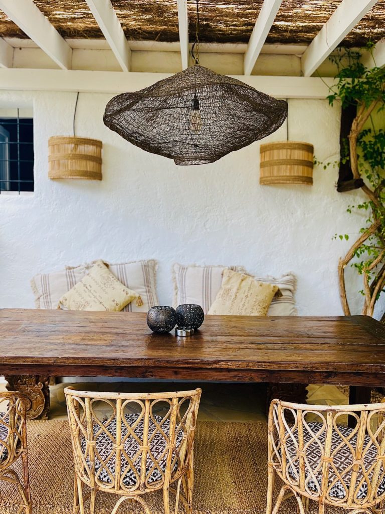 Evoquant celle d’Ibiza et s’exprimant, ici, à travers le mariage de murs blanchis à la chaux, l’installation d’attrape-rêves , l’omniprésence du bois, le recours à une palette chromatique faisant la part belle aux tons naturels, les abat-jours en osier, le mobilier en rotin , les beaux livres et les œuvres d’art, les tapis moelleux, les cheminées, les spacieuses salles de bains ou encore les balcons ou terrasses dont les chambres se trouvent pourvues.