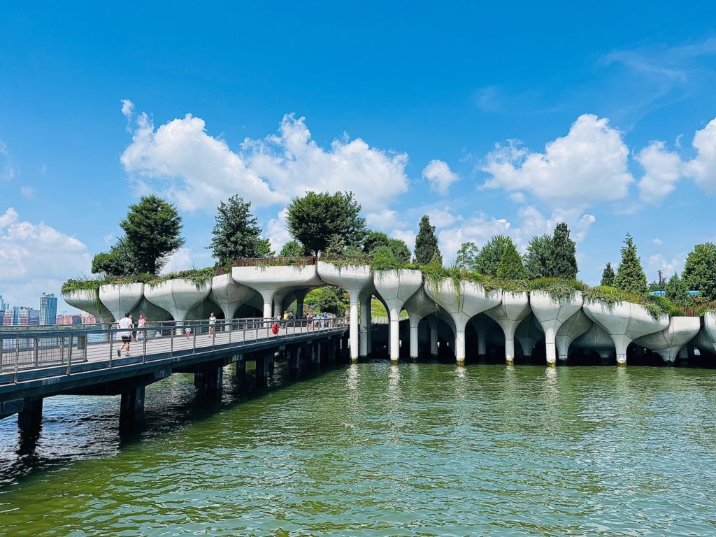 Dans le quartier de Chelsea, sur une partie des vestiges de l’historique Pier 54, se dresse depuis 3 ans l’atypique jardin public suspendu, imaginé par l’architecte du Vessel ( dont j’évoquais d’ailleurs ma visite, en 2019, ici), de Little Island.