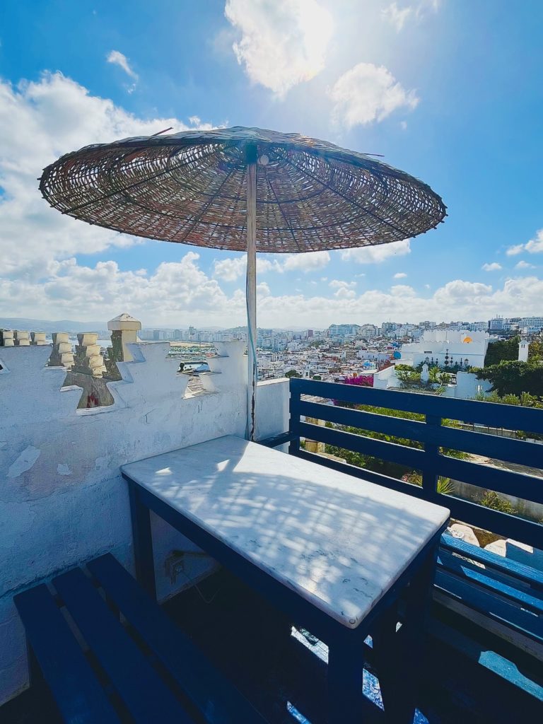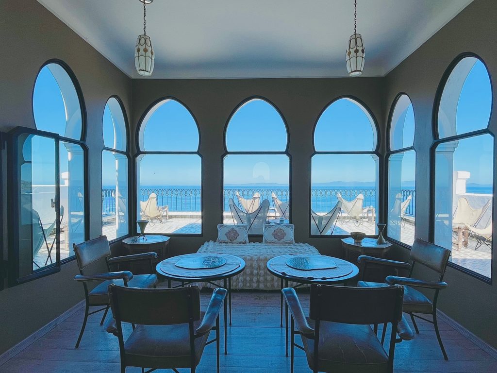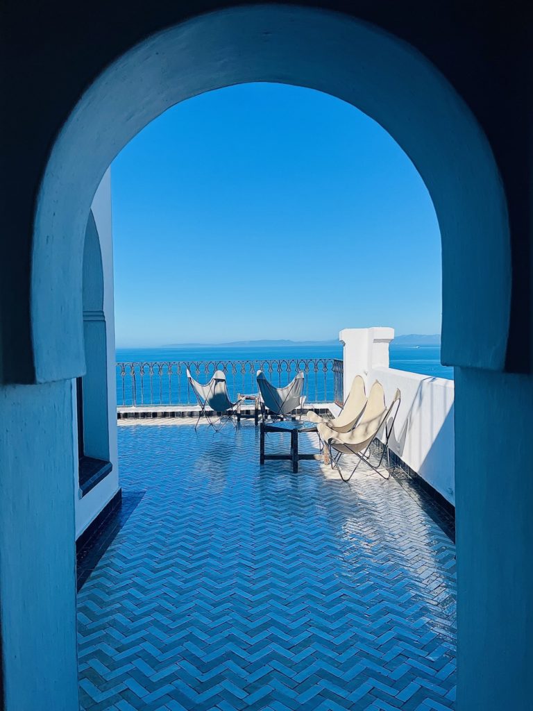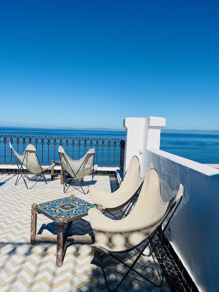 s’ouvrant sur de vertigineux panoramas sur le Détroit de Gibraltar, le port et la médina de Tanger ainsi que la côte espagnole,