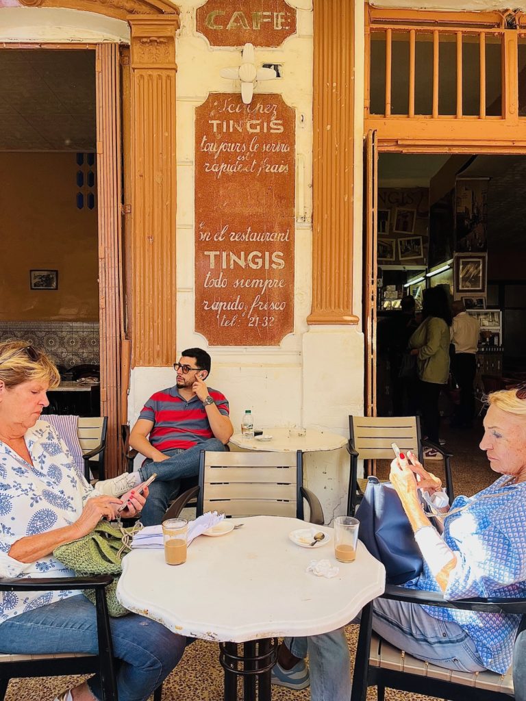 aux terrasses d’historiques cafés où, comme au Café Tingis,