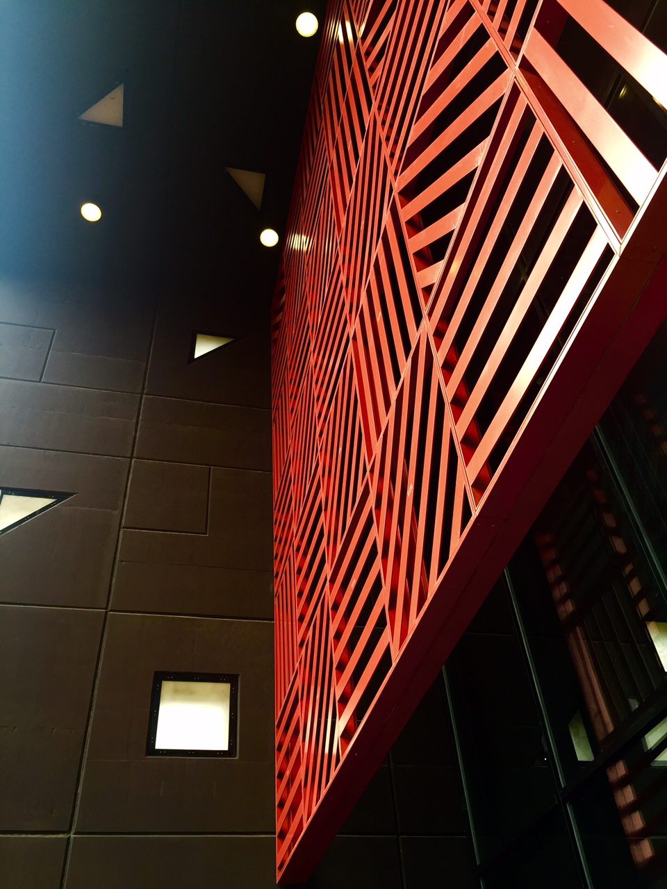 Alara. Architecture ajourée. Entrée du concept store      Impossible de manquer l'imposant  parallélépipède  noir et rouge-ocre aux motifs géométriques inspirés de la culture nigériane, se dressant,  au milieu de la Akin Olugbade Street, dans le quartier lagotien de Victoria Island.         Conçu par l'architecte britannico-ghanéen David Adjaye ( ayant notamment bâti...