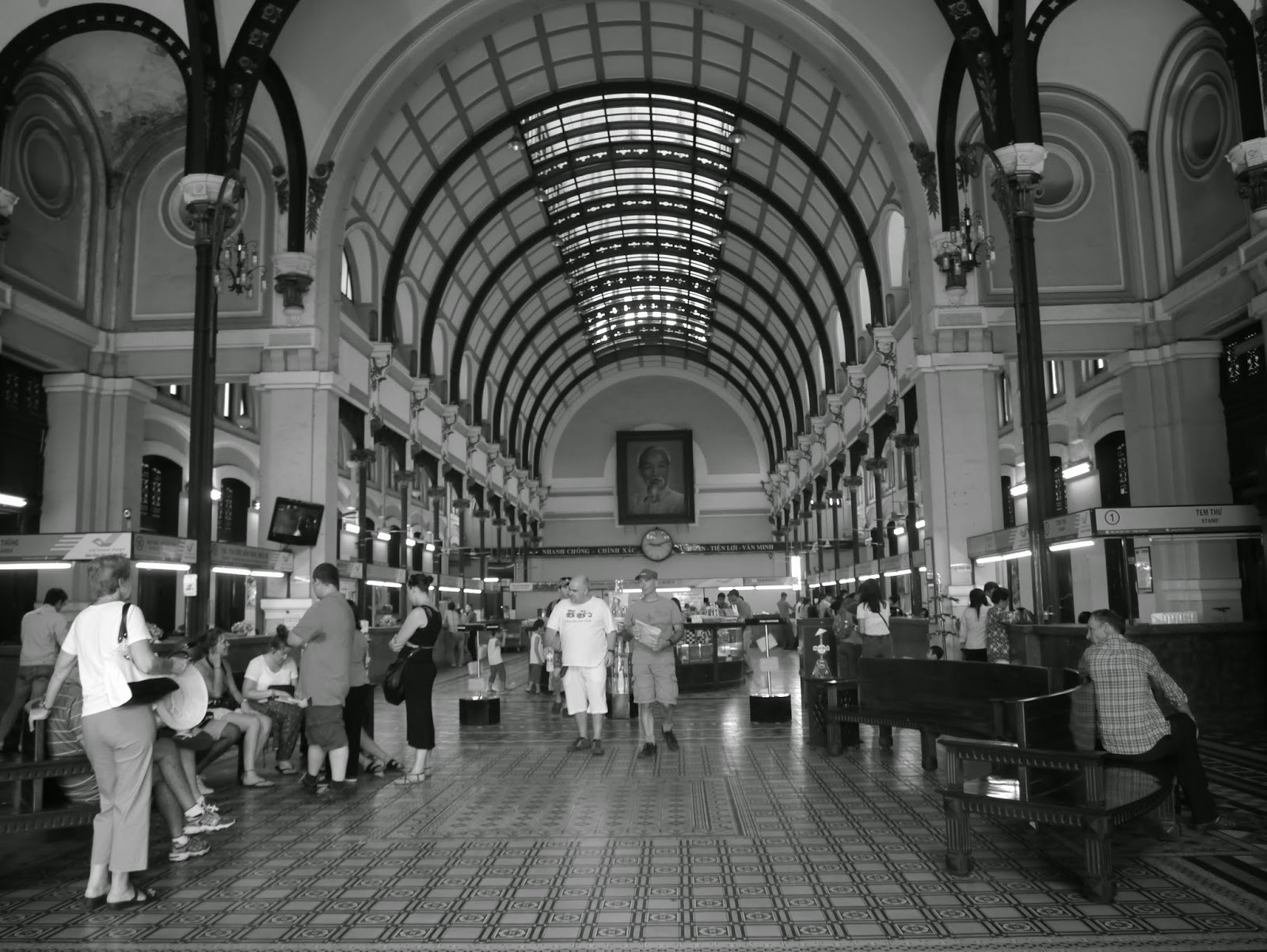 Poste centrale.Ho Chi Minh Ville      Le visage d' Ho Chi Minh Ville, la capitale économique située au sud du pays, tranche radicalement avec celui des autres villes du Vietnam !  En effet,  l'ancienne Saigon, laquelle fut ainsi rebaptisée en 1975 pour rendre hommage à l'incontournable Oncle Ho, est incontestablement une cité...