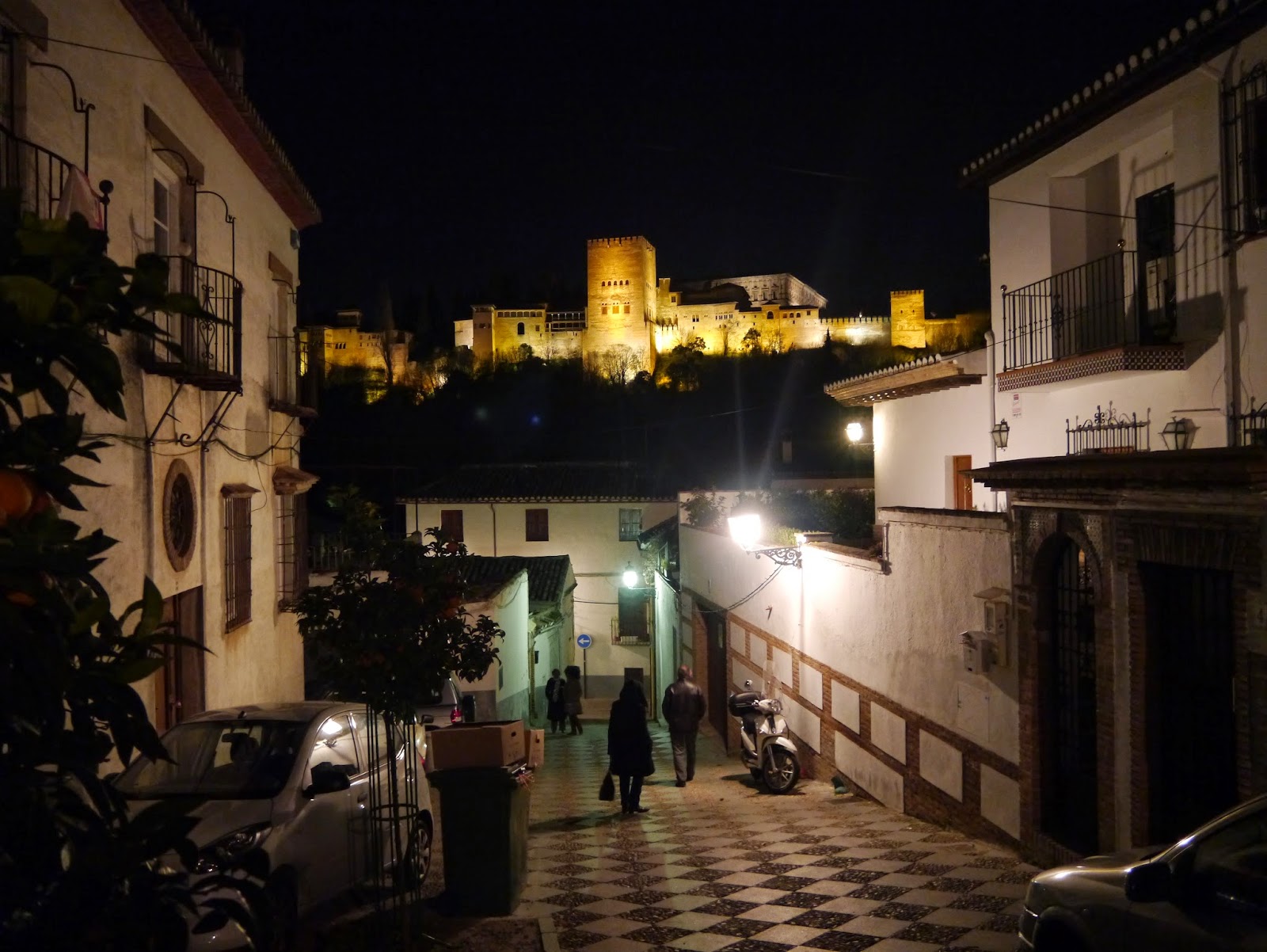 l'une des ruelles de l'Albaicin de nuit     Après Séville et Cordoue et avant de clore en beauté mon séjour andalou à Ronda, j'ai pris le chemin de Grenade, l'autre ville incontournable de cette région du sud espagnol.  A mesure que la voiture avalait, sous un ciel d'un bleu éblouissant...