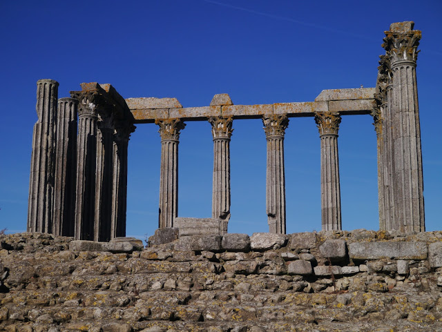 temple romain d'Evora   A quelques kilomètres de la frontière espagnole, dans la région de l'Alentejo (réputée pour ses vins, sa gastronomie et ses paysages où oliviers et chênes liège se succèdent), Evora,   ville portugaise (autrefois résidence des rois du pays), dont le centre historique est désormais classé...